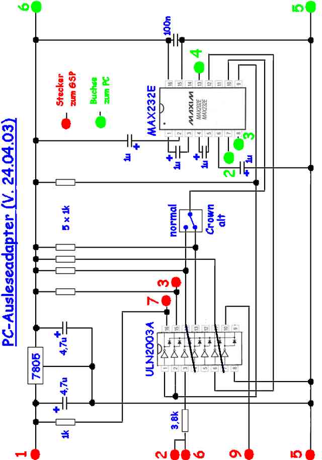 für die IC's. Die PC-seitig nötigen +-12V-Pegel erzeugt sich der MAX232