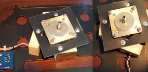 Antrieb: der Scheibenantrieb erfolgt durch Schrittmotore (Stepper) auf deren Achse direkt die Spielscheibe